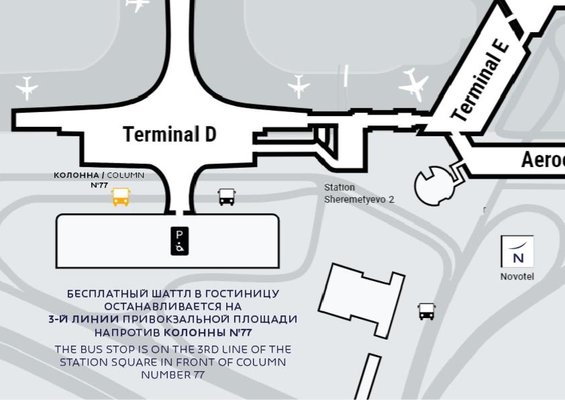 Отель «Novotel Москва Аэропорт Шереметьево» удобно расположен рядом с аэропортом, в 100 метрах от железнодорожной станции скоростных поездов «Аэроэкспресс», откуда можно за 35 минут доехать до центра Москвы. Гостям предлагается бесплатный трансфер до терминалов B и D. На территории обустроена бесплатная частная парковка.