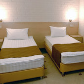 Пройти два квартала (примерно 300м) вдоль Шелковского шоссе в сторону Москвы, свернуть налево и пройти еще один квартал. Вы увидите 4-х этажное здание бежевого цвета – Hotel Orange.