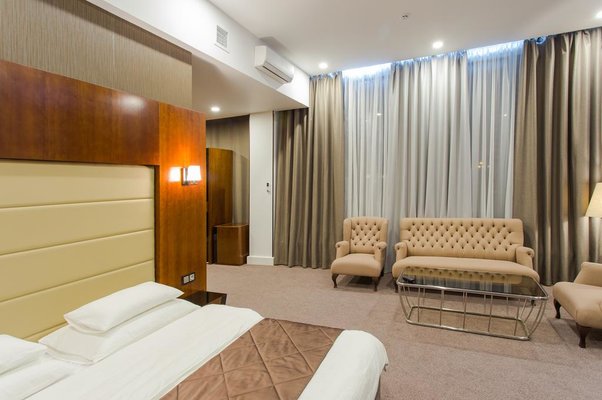 Для размещения гостей подготовлены стильные номера различных категорий, оснащенные комфортабельной мебелью с отделкой из дерева, плазменным телевизором, системой кондиционирования, собственной ванной комнатой с набором индивидуальных гигиенических принадлежностей. На территории работает беспроводной доступ Wi-Fi.