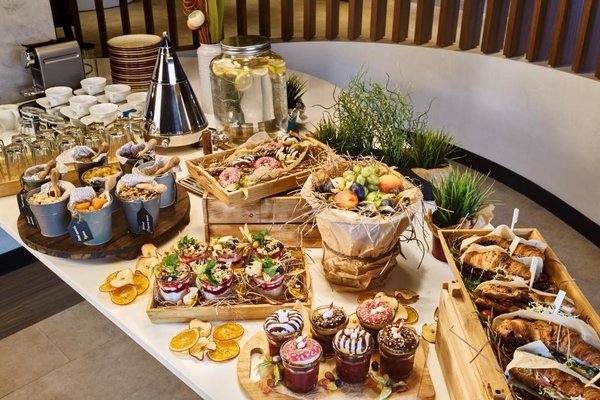 В ресторане при отеле подают традиционные блюда русской и европейской кухни, а в баре можно заказать различные напитки. Доставка еды и напитков в номер осуществляется круглосуточно.