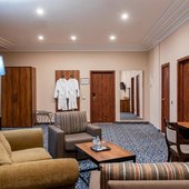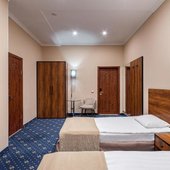 Номерной фонд представлен уютными номерами, каждый из которых выполнен в классическом стиле. Здесь есть все необходимое для проживания, а именно удобная мебель, современная техника, беспроводной доступ к сети Wi-Fi. В собственных ванных комнатах присутствует набор полотенец и гигиенические принадлежности.