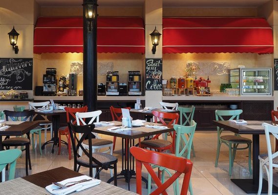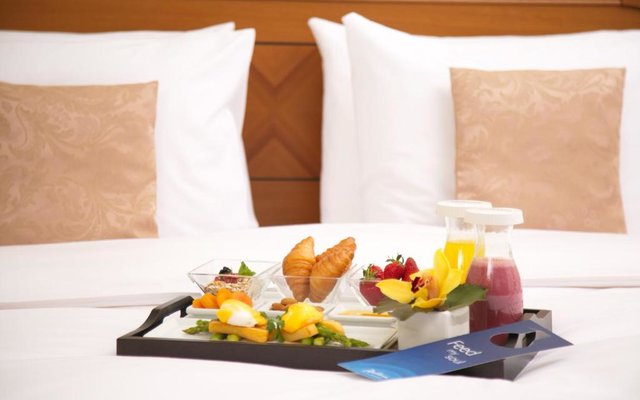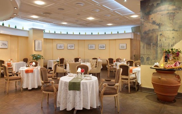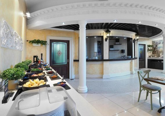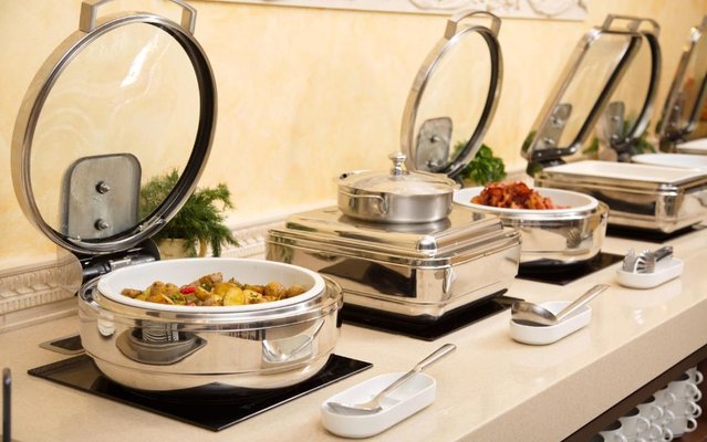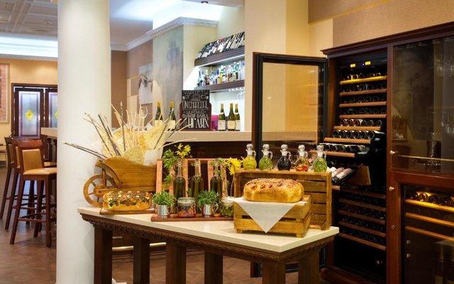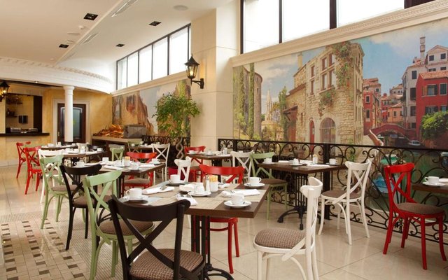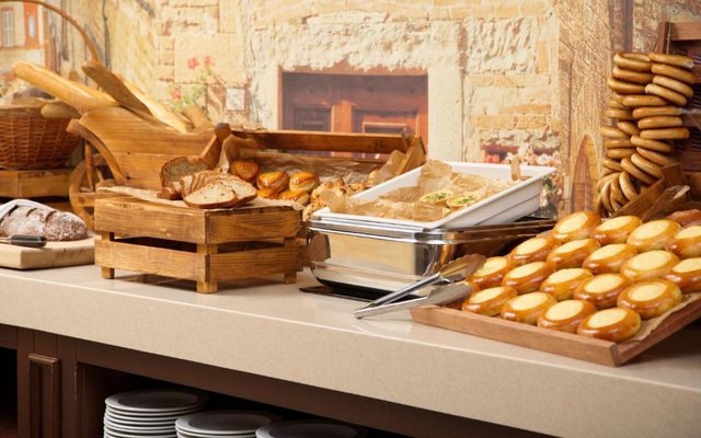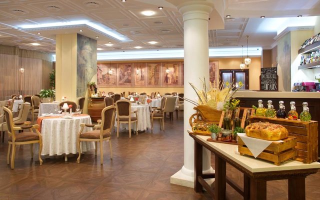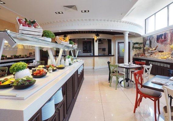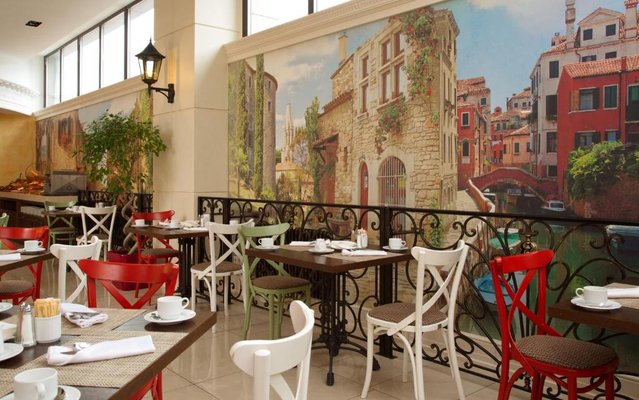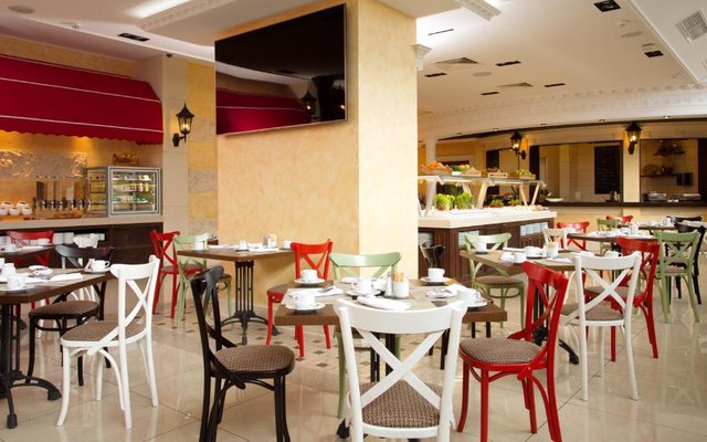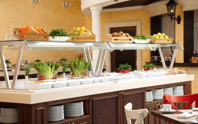 В отеле работает целых три объекта питания, каждый из которых оформлен в тематическом дизайне: рестораны «Талавера» (итальянская кухня), «Мукузани» (грузинская кухня), «Сумосан» (японская кухня). В меню представлен широкий ассортимент вкусных блюд и напитков.