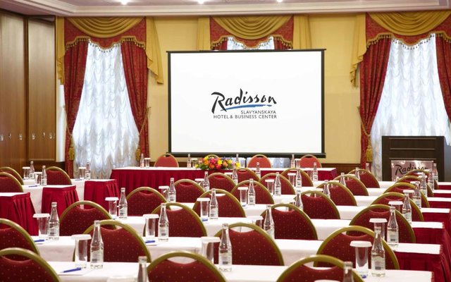 Отель «Рэдиссон Славянская» имеет отличное местонахождение и пользуется популярностью у гостей города. Среди прочих услуг в гостинице имеется конференц-зал в различных вариациях, что позволит деловым посетителям провести мероприятие на высшем уровне.