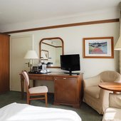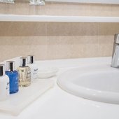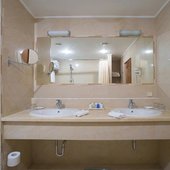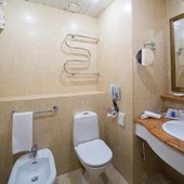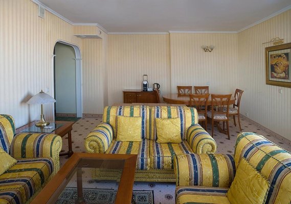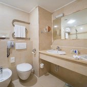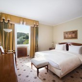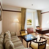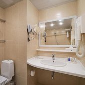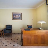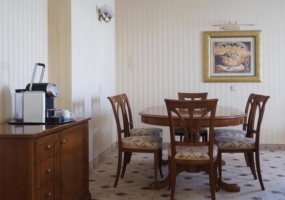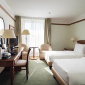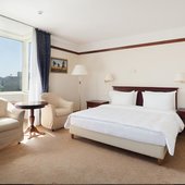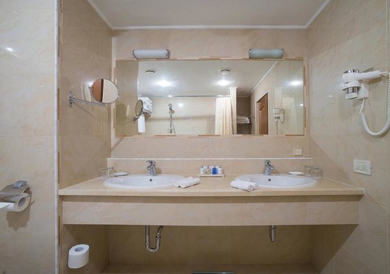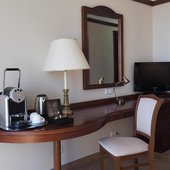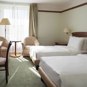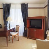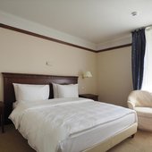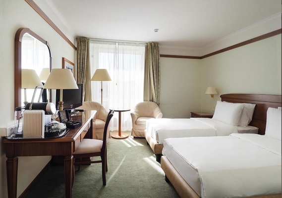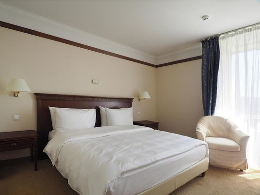 Номера отеля оформлены в классическом дизайне и оснащены удобными кроватями с матрасом, мини-баром, телевизором и собственной ванной комнатой. Среди прочих удобств средства гигиены, чай, кофе, посуда и чайник.
