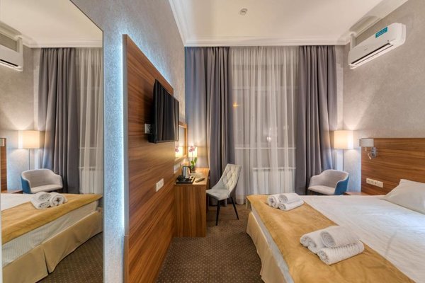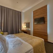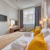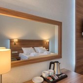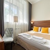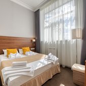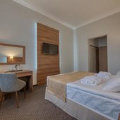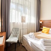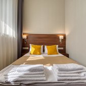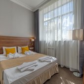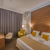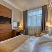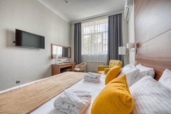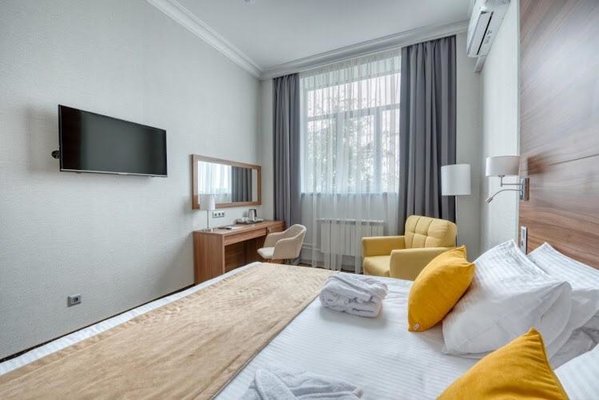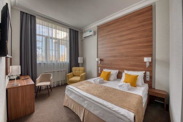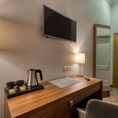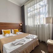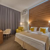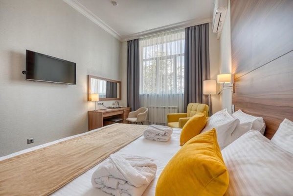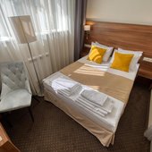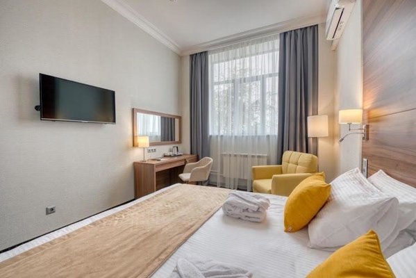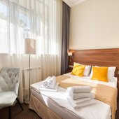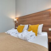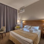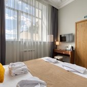 Для размещения предлагаются двухместные номера с современной отделкой в светлой цветовой гамме. Они оснащены: одной двухспальной или двумя односпальными кроватями, шкафом для хранения личных вещей, рабочим столом, кондиционером и телевизором с плоским экраном. Ванная комната есть в каждом номере.