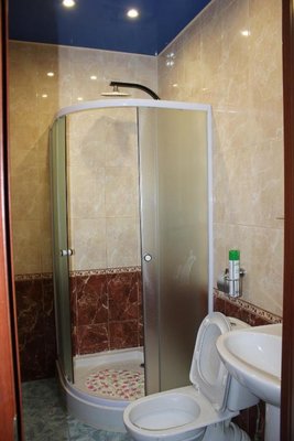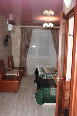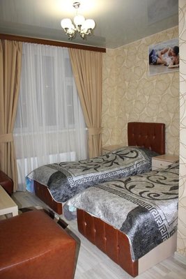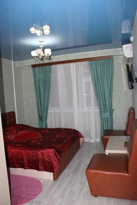 Гостям на выбор предложено несколько видов номеров: одно-, двух- и трехместные. Они полностью меблированы (шкафы, тумбы, полки), в них есть ТВ, Wi-Fi, сплит-система. В числе удобств ванная комната с феном.