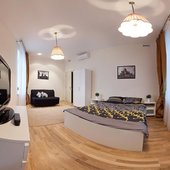 Номерной фонд составляет 9 позиций. Каждый оформлен в современном стиле. Просторные комнаты обустроены мягкой мебелью, кондиционером, телевизором с плоским экраном, гардеробной. В некоторых вариантах имеется отдельная ванная комната и санузел.