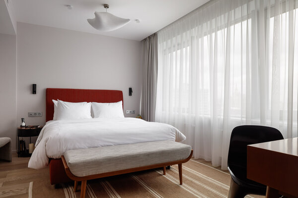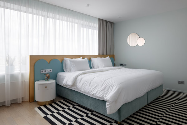 Гостей ожидают шесть различных типов современных апартаментов с индивидуальным дизайном, включающих элементы модерна середины прошлого века. В отеле представлены комнаты различного размера, от небольших уютных до просторных апартаментов. Каждый номер уникален: в них использовано эксклюзивное освещение, винтажная мебель от известных брендов, а также мебель и аксессуары от российских дизайнеров. В номерах есть панорамные окна, индивидуальные ванные комнаты с душем или ванной, сплит-система и полностью оборудованные мини-кухни.