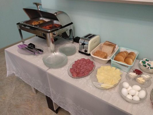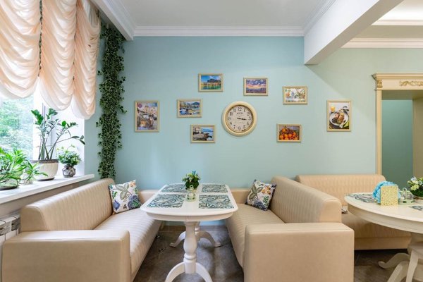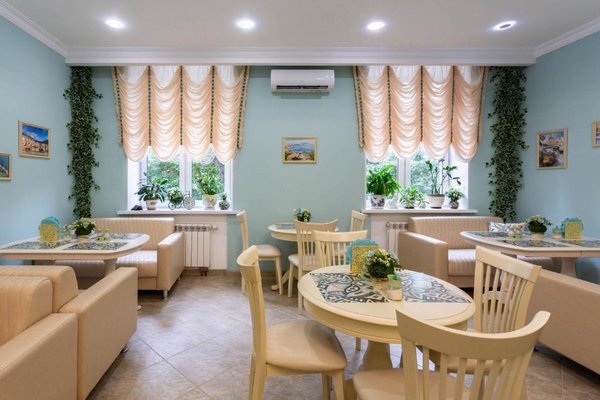 На завтрак готовят сытные блюда и горячие напитки в уютном кафе. В обеденное и вечернее время заведение работает по меню. Гармоничная атмосфера располагает посетителей к приятному отдыху.