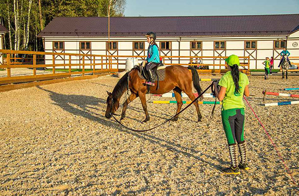 Конный клуб «Петрухино» предлагает отличные возможности для активного отдыха. Здесь можно освоить владение верховой ездой, усовершенствовать свои навыки наездника, пройти подготовку к предстоящим соревнованиям и пообщаться с красивыми и умными лошадьми. Отдыхающие имеют возможность прокатиться верхом, совершить увлекательную прогулку на лошадях по окрестностям комплекса, заказать яркую и живую фотосессию с грациозными животными. Дети могут прокатиться на пони или в упряжке под присмотром инструктора. Все занятия проводятся на плацу с профессиональным покрытием еврогрунт, для зрителей оборудованы удобные крытые трибуны.