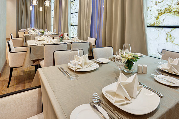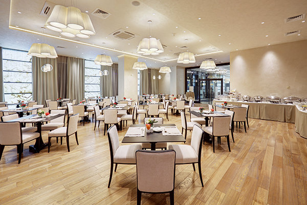 Основной ресторан — на территории отеля; кухня: европейская / паназиатская; время работы: с 07-00 до 24-00