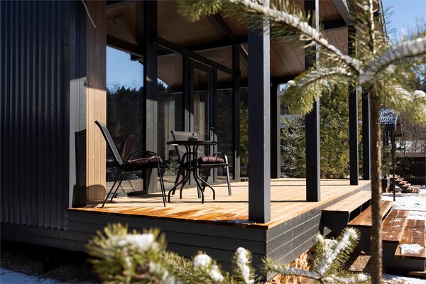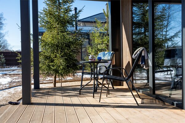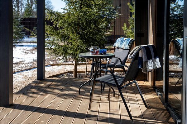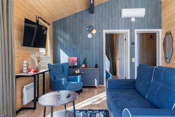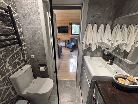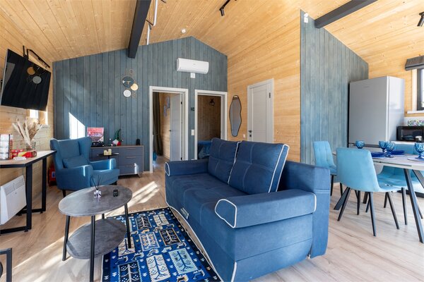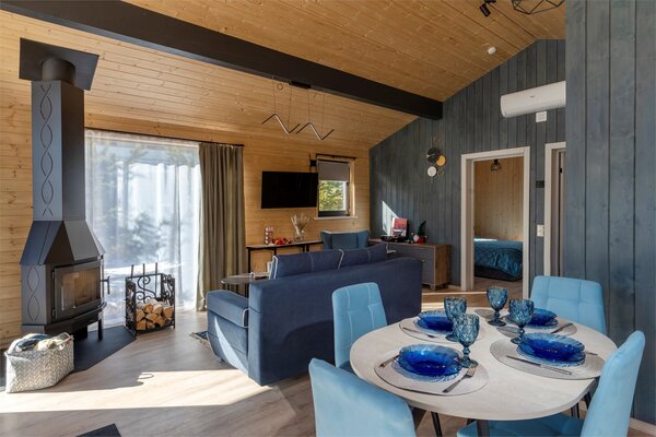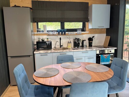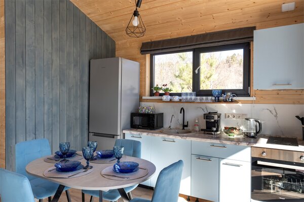 Этот совершенно новый дом, с захватывающим панорамным видом на лес и уютным камином, готов принять вас прямо сейчас! Он идеально подходит для размещения до 6 гостей, предлагая две отдельные спальни, просторную кухню-гостиную, полностью оборудованную современной техникой и всем необходимым для кулинарных шедевров, а также ванную комнату с душем и всеми туалетными принадлежностями.
