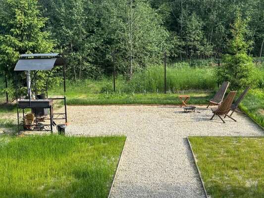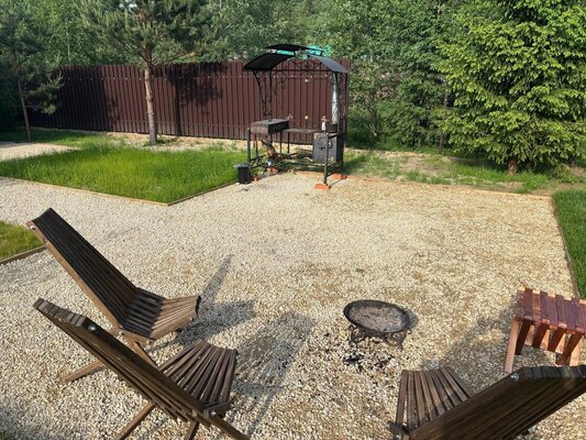 В вашем распоряжении будет весь дом, включая живописную террасу с лесными пейзажами, парковку и собственный участок площадью 7 соток. Насладитесь завтраком под пение птиц на просторной террасе, приготовьте ароматный ужин на мангале и завершите день, любуясь звездным небом у костра. Для вашего удобства предусмотрена парковка, а для вашего спокойствия — система видеонаблюдения.