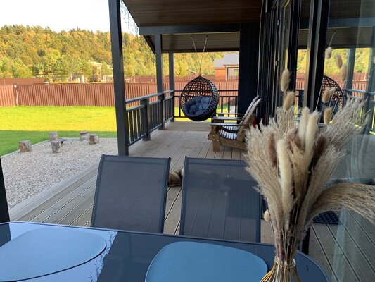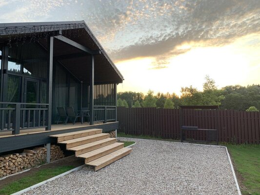 На территории гостей ждёт просторная терраса с удобной мебелью, мангал и зоны для костра с готовым запасом дров, парковка на два автомобиля. В 10 минутах езды работают популярные супермаркеты, фермерские лавки со свежими овощами и фруктами и уютные кафе.
