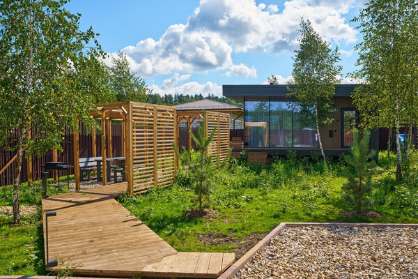 Девять соток живописной территории, окруженной природой, приглашают вас на свежий воздух. Завтракайте на террасе, устраивайте пикники с мангалом или провожайте закаты у костра, любуясь звездным небом. Парковка на территории – приятный бонус для вашего удобства. И, конечно, жемчужина этого места – сауна, предлагающая глубокое расслабление и заряд бодрости. Первое посещение уже включено в стоимость – начните свой отдых с полного оздоровления!