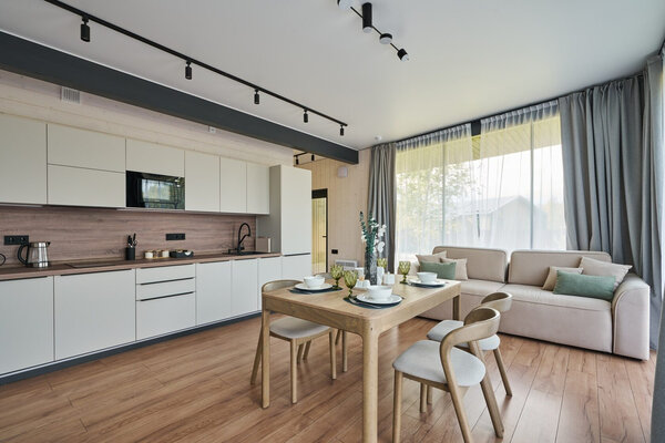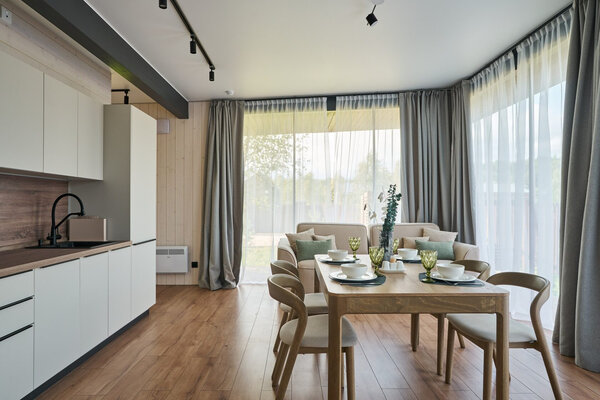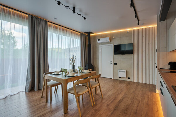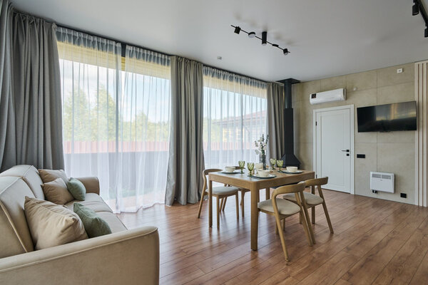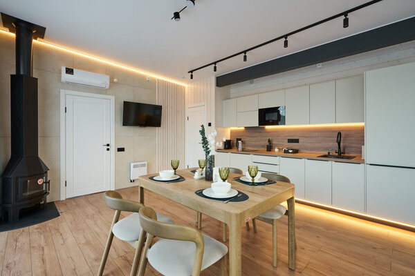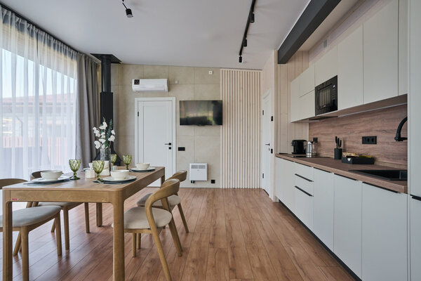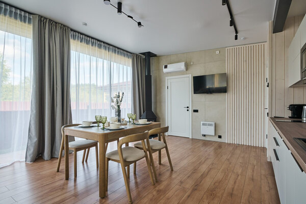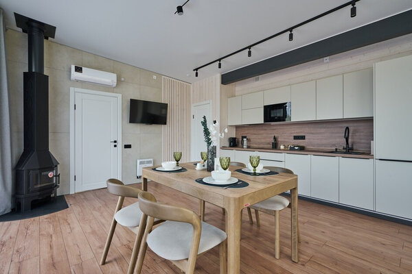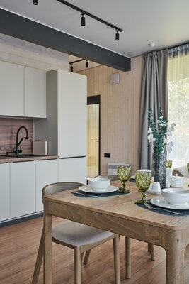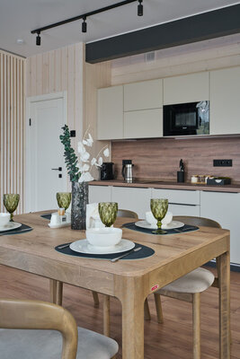 Три отдельные комнаты обеспечат комфортное проживание для всех ваших гостей. Общая зона кухни-гостиной – это центр притяжения, где вы сможете вместе готовить, общаться и наслаждаться моментами. Все бытовые мелочи, от посуды до постельного белья, продуманы до мелочей, чтобы вы могли полностью расслабиться.