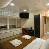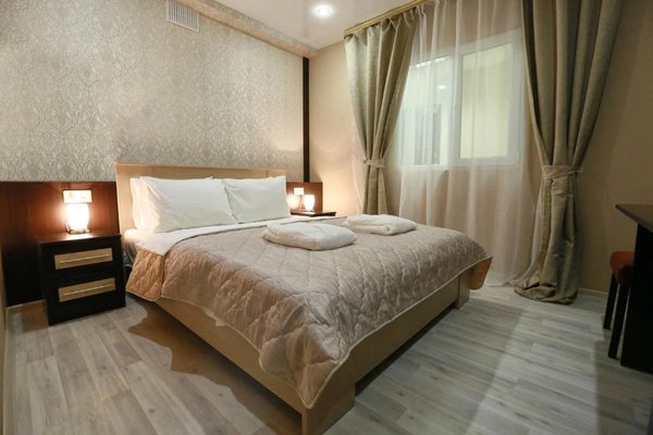 Гостей ожидают уютные номера категорий "Эконом", "Стандарт", "Комфорт" и "VIP". Все они оснащены удобной мебелью, а также телевизором, электрическим чайником, кондиционером, собственной ванной комнатой. К услугам гостей бесплатный Wi-Fi и организация трансфера за дополнительную плату.