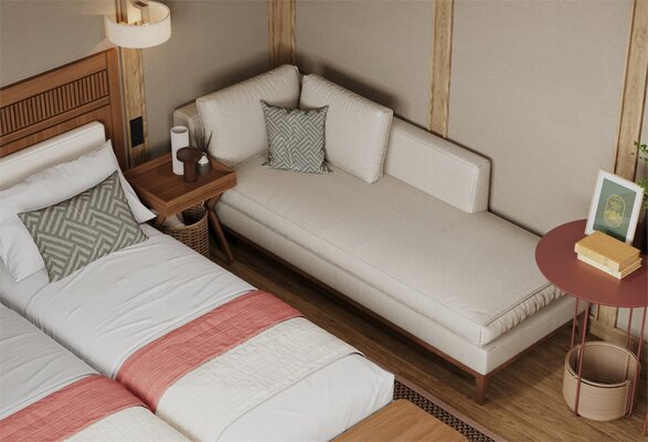 Уединённое пространство для полноценного восстановления и отдыха. Зона рассчитана на комфортное пребывание до 8 гостей.