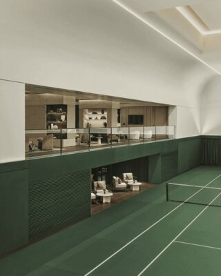 Закрытый теннисный корт, падл-корт, сквош и открытая теннисная площадка.