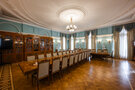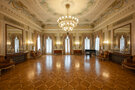 Зал отличается естественным дневным освещением и предоставляет доступ к Wi-Fi. Его изысканный интерьер, украшенный лепниной и фресками, создает уютную атмосферу, дополненную крупными люстрами. Это пространство идеально подходит для гармоничного сочетания комфорта и стиля на любом событии.