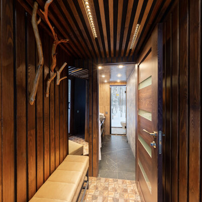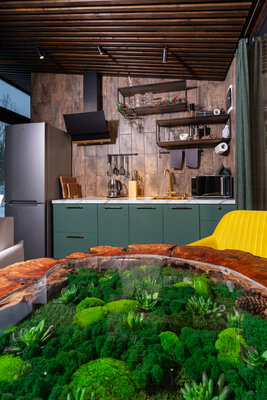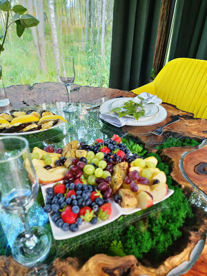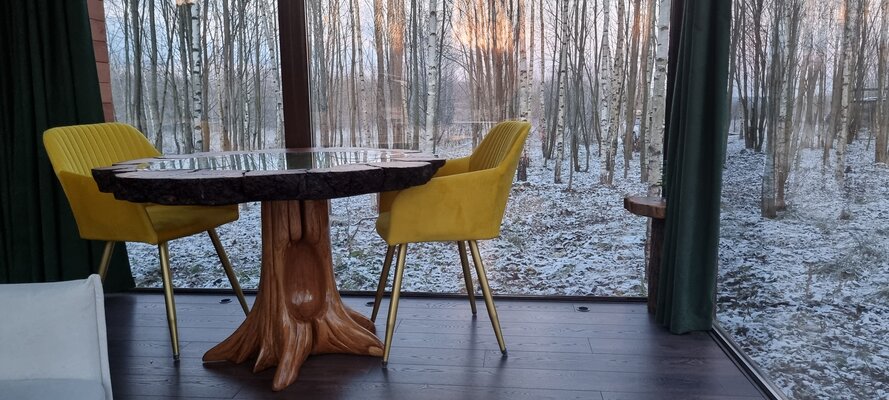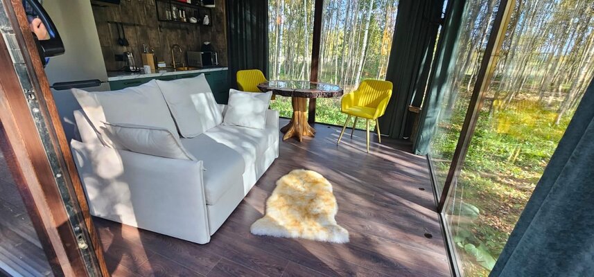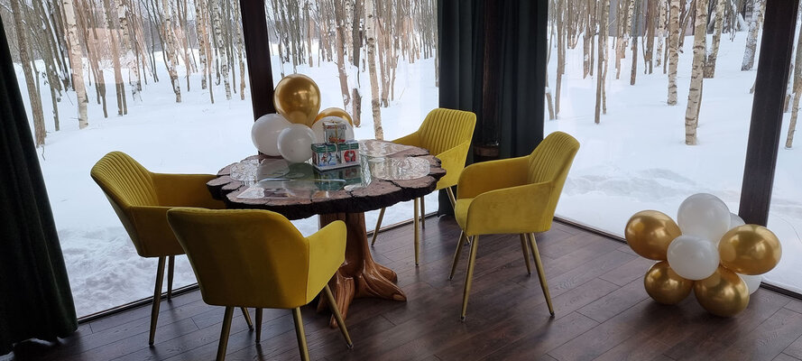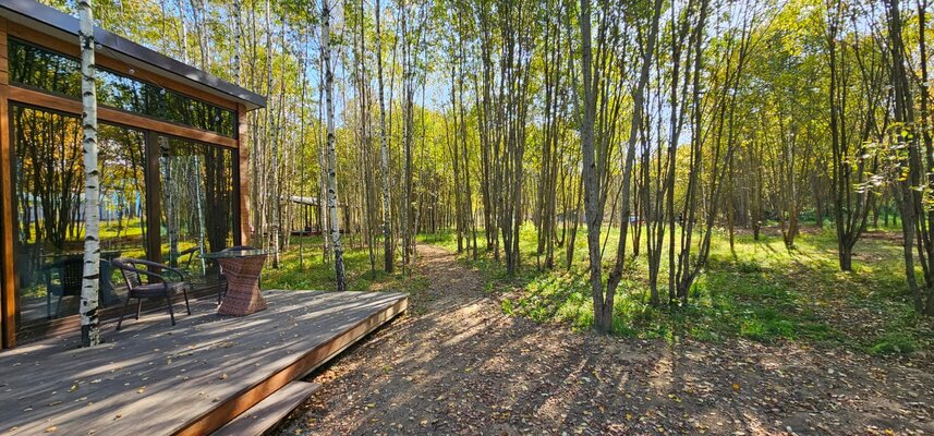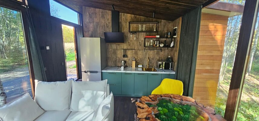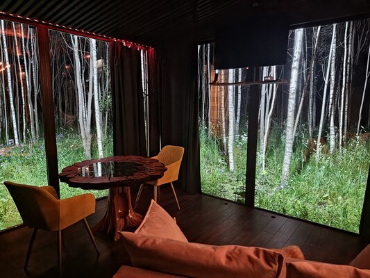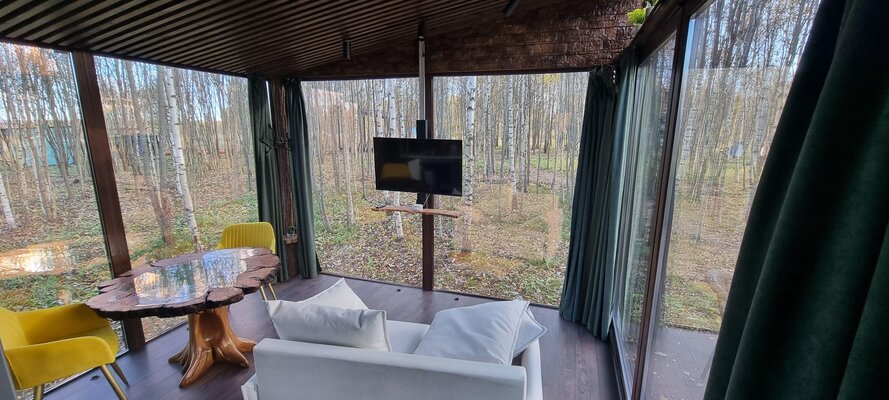 Каждый дом оборудован современной системой «умный дом» (управление освещением и климатом голосом), а уникальная мебель ручной работы подчеркивает единение с окружающим ландшафтом. Проводите время с близкими, играя в настольные игры или наслаждаясь прогулками по лесу, собирая ягоды.
