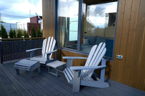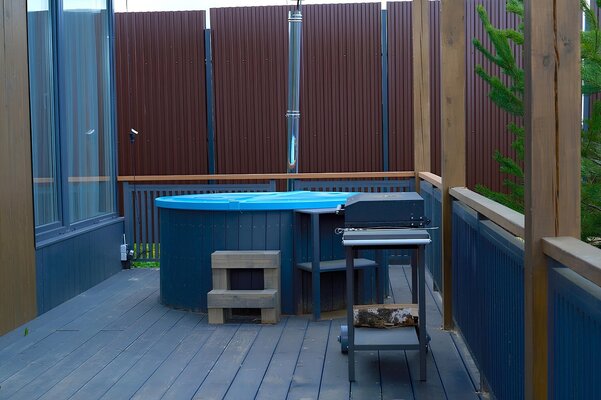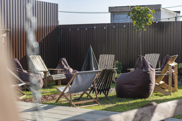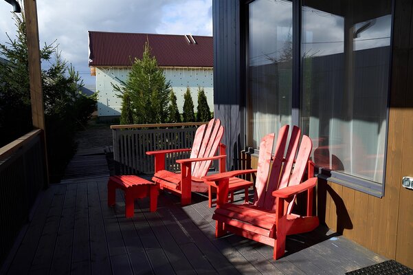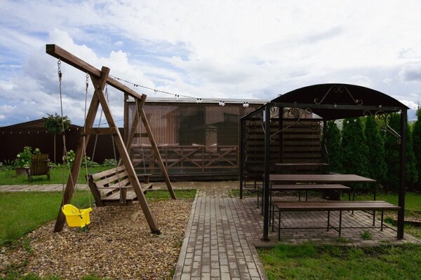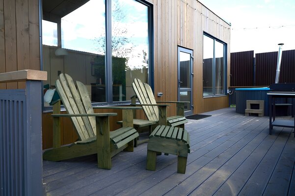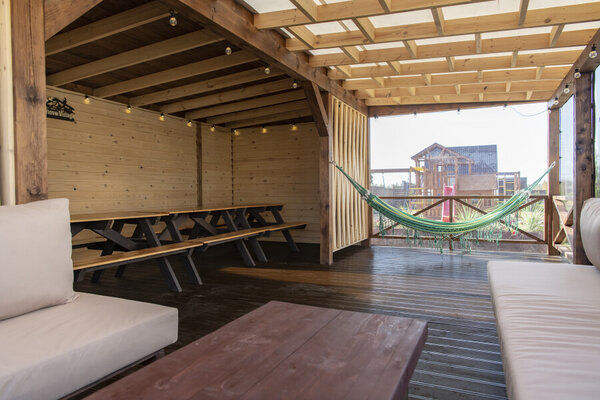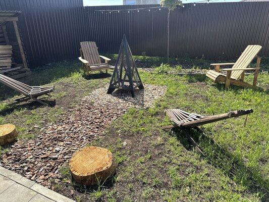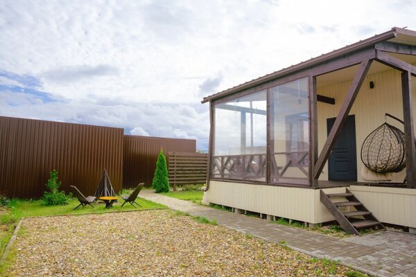Пространство для спокойного отдыха и общения на свежем воздухе — для совместных вечеров с друзьями и близкими. Доступна при бронировании трёх домиков вместе: барнхаусов (№ 8 и 9) и Лев на Апероли (№ 10).