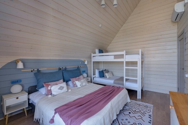 Дети до 5 лет (включительно) размещаются без дополнительной оплаты (без установки отдельного спального места и не превышая максимальную вместимость дома).