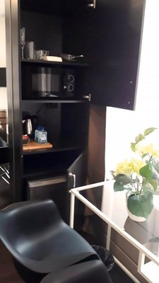 Отдыхающие могут воспользоваться электрическим чайником и холодильником. В 15 минутах пешей прогулки есть кафе, где можно пообедать, а также супермаркеты.