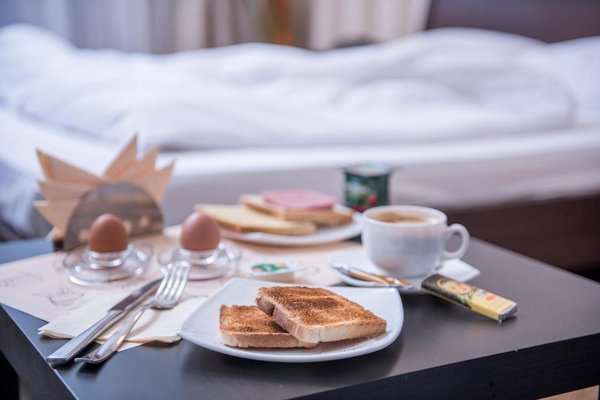 При гостинице работает небольшое кафе, в котором по меню можно заказать закуски, напитки и горячие блюда домашней кухни. Также, вблизи есть несколько недорогих столовых.