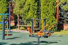 На свежем воздухе вас ждёт тренажерный городок, где собраны разнообразные спортивные элементы: многопролетные перекладины, брусья, шведские стенки, скамейки для пресса и отягощения. Это идеальное место для активных занятий и укрепления тела в гармонии с природой.