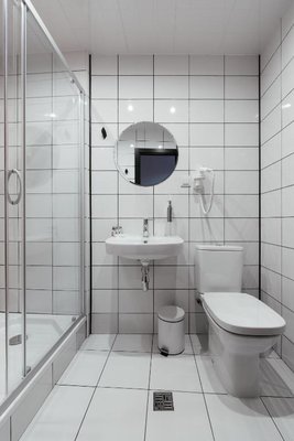 Номера оборудованы самой необходимой мягкой мебелью и современной техникой. В ванной комнате установлен душ, туалет и раковина.