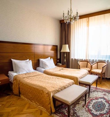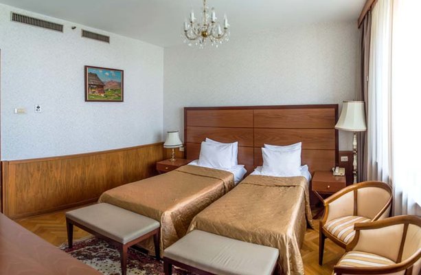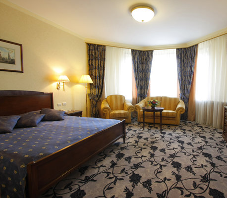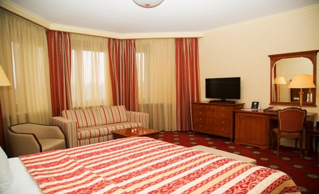 Неоспоримым достоинством номерного фонда гостиницы является большая площадь номеров и открывающийся уникальный вид на Москву. В отеле 204 комфортабельных номера различных категорий (стандарт, делюкс, полулюкс и люкс). Номера оборудованы телефоном, спутниковым телевидением, сейфом, мини-баром и другим современным сервисным оснащением.
