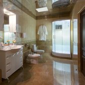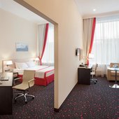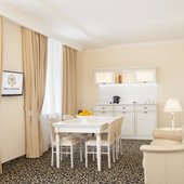Апартаменты бизнес-класса: достаточно чисто, очень большие, хорошая ванная комната, присутствуют все туалетные принадлежности, тапочки и халаты. Ничего просить не надо. Есть холодильник, чашки, стаканы, минибар. Чайника нет. Только кулер в коридоре. Но их много, и...