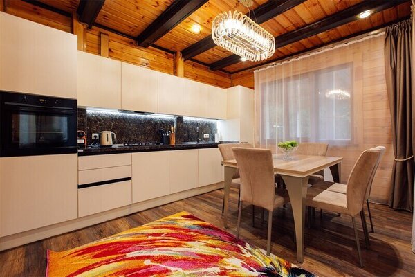 После бани не только тело, но и душа радуется! Отдохните и расслабьтесь паром в кругу друзей или семьи. Баня оборудована мини-кухней с необходимой посудой, плитой и холодильником, где можно приготовить закуски и сервировать стол. Камин в зале придаст Вашему общению нотки тепла и радости. По желанию гостей можно заказать самовар на дровах. Большая крытая веранда бани — прекрасное место в окружении природы для летнего отдыха и общения.