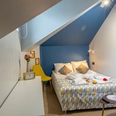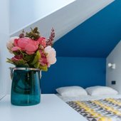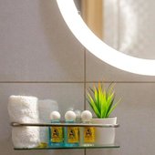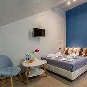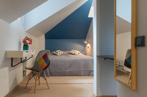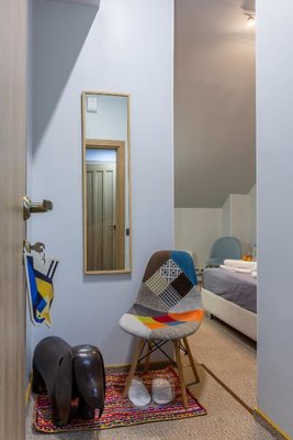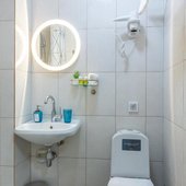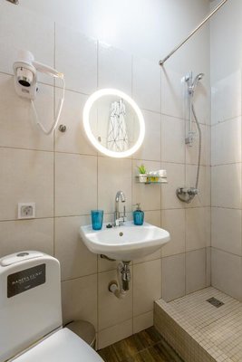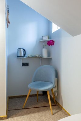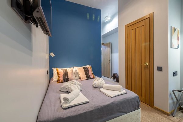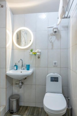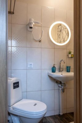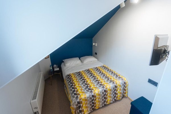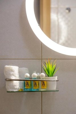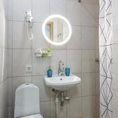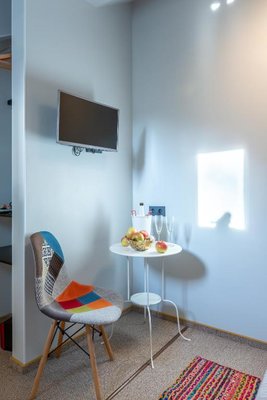 Разместиться можно в просторных номерах, в которых есть кровать с ортопедическим матрасом, шкаф для одежды, телевизор и личная душевая комната с туалетом. Так же предлагают набор косметических средств и полотенца.