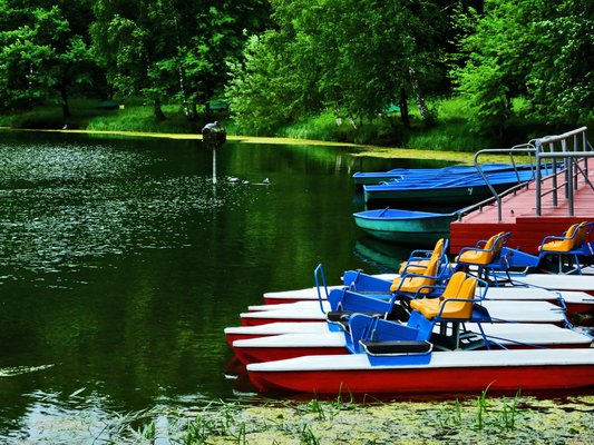 На лодочной станции вы можете взять напрокат катамаран или лодку для романтической прогулки по живописному озеру. Или порыбачить, взяв напрокат удочку.