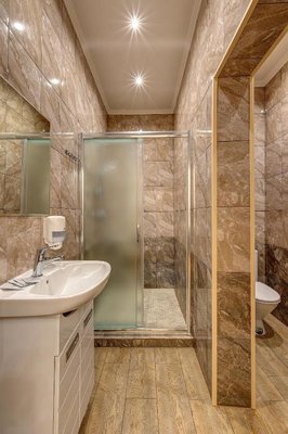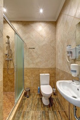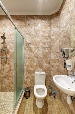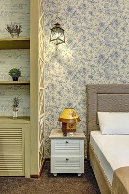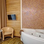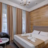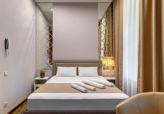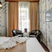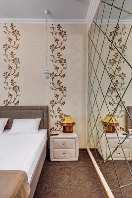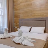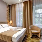 Интерьер выполнен в классическом стиле и светлых тонах, что позволяет отдыхающим почувствовать комфорт и уют в период проживания. Во всех номерах есть необходимая мебель и техника. Ванная комната укомплектована стандартным набором сантехники. Из окон открывается живописный вид на город.
