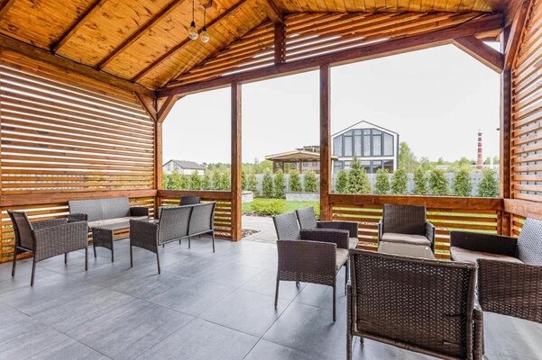 На территории комплекса доступны мангальная зона и зона для барбекю, волейбольная площадка, а также бесплатный уличный подогреваемый бассейн. Для полноценной релаксации предусмотрена дровяная баня с небольшим бассейном.