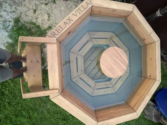 Банный чан топится дровами до температуры 38–45 градусов, что делает купание комфортным в любое время года.