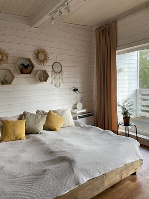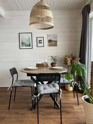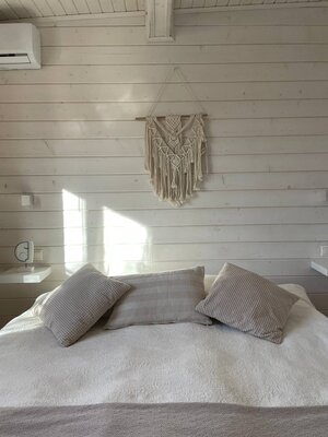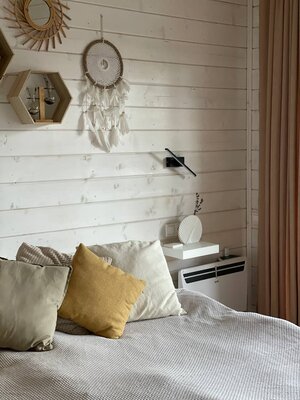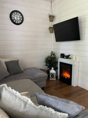 Две просторные спальни с удобными кроватями, где вы сможете полностью расслабиться и восстановить силы. Уютная гостиная с мерцающим электрическим камином, создающим неповторимую атмосферу тепла и уюта. Современная кухня, полностью оборудованная всем необходимым для приготовления вкусных блюд, включая кулер с чистой питьевой водой