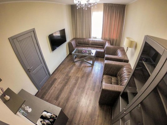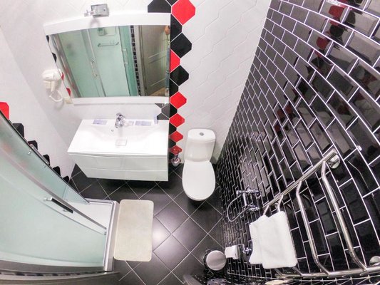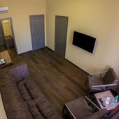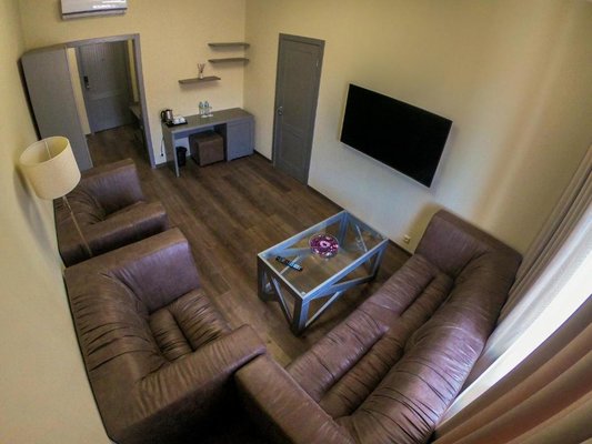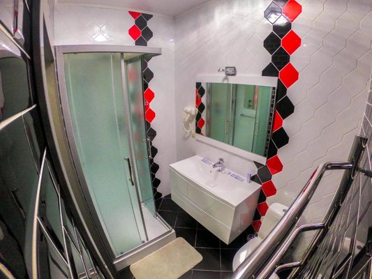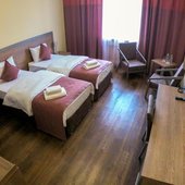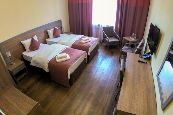 Во всех номерах в числе удобств шкаф для одежды. Кроме того, в каждом номере гостиницы «Репин» есть письменный стол, телевизор с плоским экраном и собственная ванная комната.