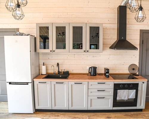 - кухни с индукционными плитами, посудомоечными машинами, духовыми шкафами, холодильниками, чайниками и кофемашинами;