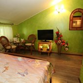 Все номера оформлены в индивидуальном стиле, укомплектованы необходимой мебелью и техникой. Санузел оснащен качественной сантехникой и гигиеническими принадлежностями. Номерной фонд располагает категориями "Стандарт", "Делюкс", "Люкс" и "Апартаменты".