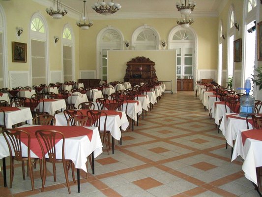В санатории организовано трехразовое питание по заказной системе с учетом лечебных диет.