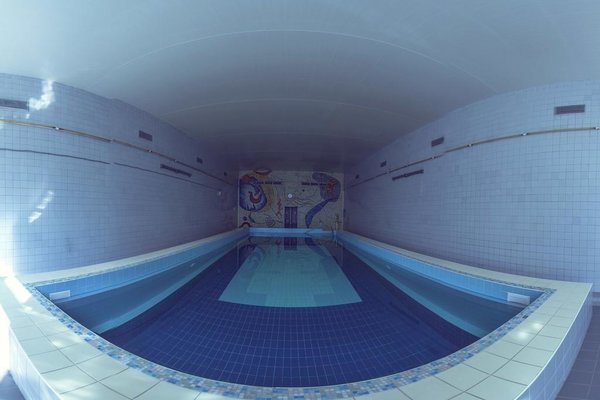 Бассейн находится на 2-ом этаже 2-го корпуса санатория и имеет относительно небольшие размеры – 12 метров в длину и 6 метров в ширину.
