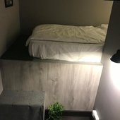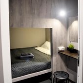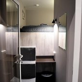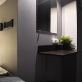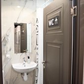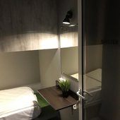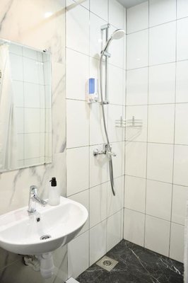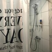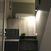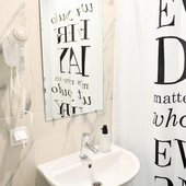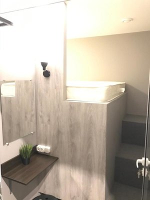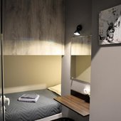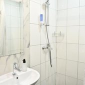 Просторные апартаменты оснащены кроватью и ортопедическим матрасом, эргономичной мебелью и современной техникой. В душевой комнате имеются все удобства и средства гигиены.