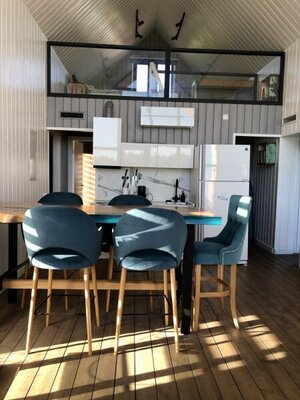 Откройте для себя Sheluha House — глэмпинг, где спокойствие и красота природы сливаются воедино. Стильный дом в стиле барнхаус с панорамными окнами предлагает захватывающие виды и идеальный баланс комфорта и уединения. Забудьте о суете и восстановите душевное равновесие в уютных спальнях (две на первом этаже — одна с двуспальной, другая с двумя односпальными кроватями, и одна на втором), просторной гостиной и полностью оборудованной кухне. Готовьте из свежих продуктов и наслаждайтесь трапезами с потрясающим видом.