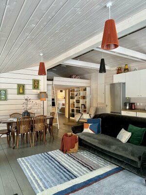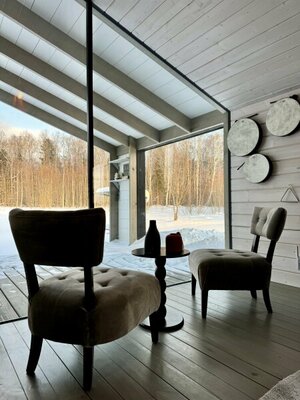 Отдохните от городской суеты в стильном одноэтажном доме Sheluha House, расположенном на территории заповедника «Бородино». Этот уютный дом с камином идеально подходит как для спокойного отдыха, так и для комфортной работы удаленно.