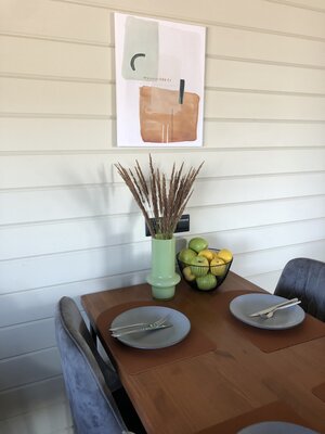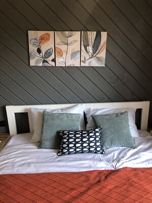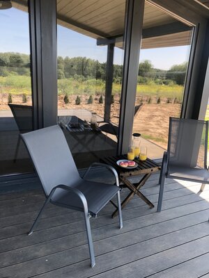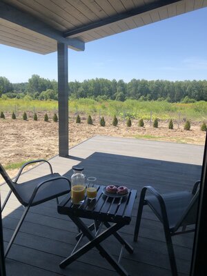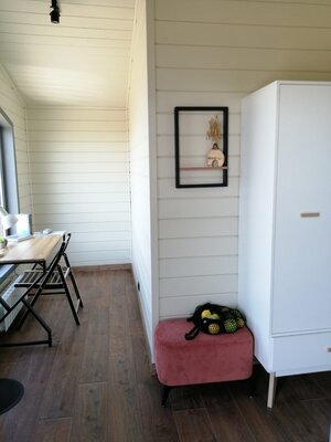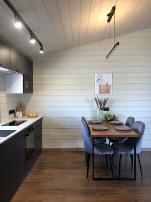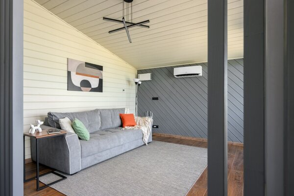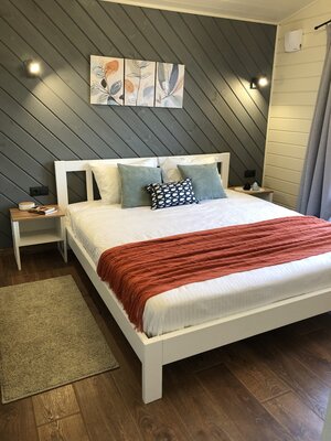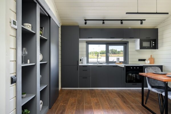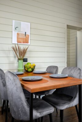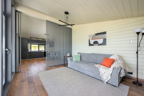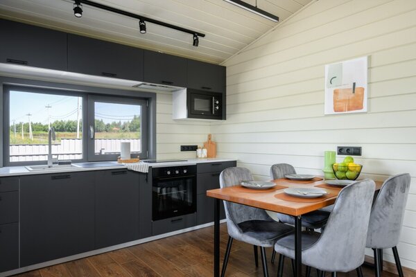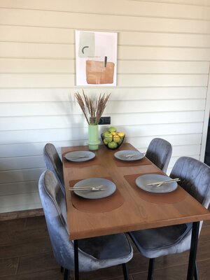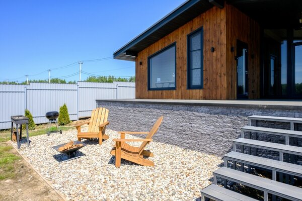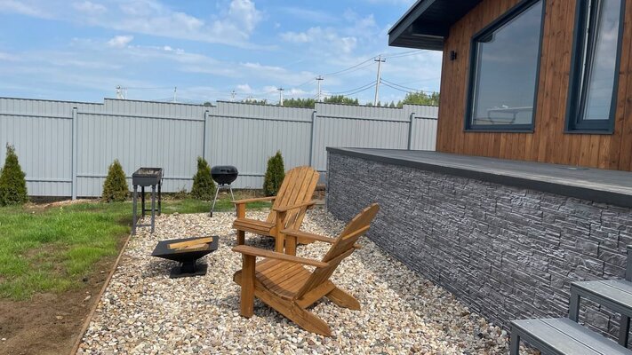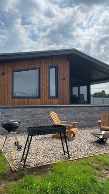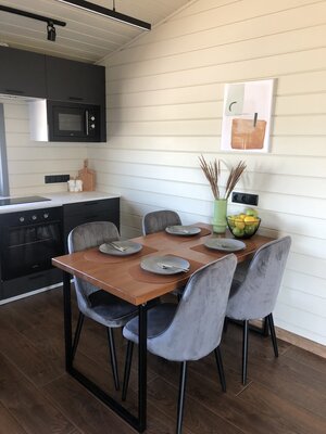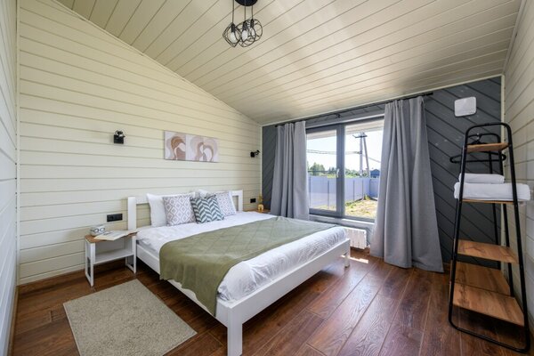 Этот комфортабельный дом предлагает уединение и потрясающие виды на природу благодаря панорамным окнам. Внутри вас ждут две спальни, светлая гостиная, полностью оборудованная кухня и даже удобное рабочее место с Wi-Fi. На крытой террасе с мангалом и костровой зоной можно наслаждаться отдыхом на свежем воздухе.