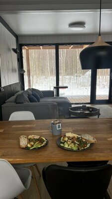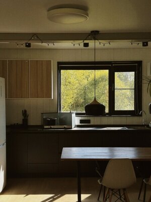 Дом полностью меблирован и оборудован всем необходимым для комфортного проживания: уютная гостиная, современная кухня, Wi-Fi, ТВ, музыкальный центр. Просторная веранда с видом на природу станет вашим любимым местом — утро с чашечкой кофе, вечерний гриль под крышей мангальной зоны. Для семей с детьми предусмотрены детская кроватка, стульчик для кормления, ванночка, песочница, а по запросу — даже коляска.